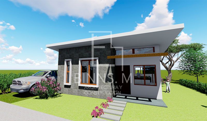 Casa de 54m2 para una pareja que inicia su proyecto de vida. Consta de dos dormitorios, wc, baño, sala, cocina-comedor y cuarto de pilas. Diseño contemporáneo de paredes altas con iluminación y ventilación natural.