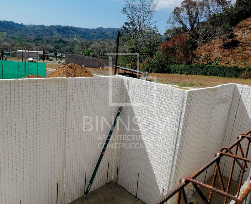 Instalación de sistema constructivo covintec, casa de 110m2. Rectificación de ejes, colocación de anclajes e instalación de paneles.