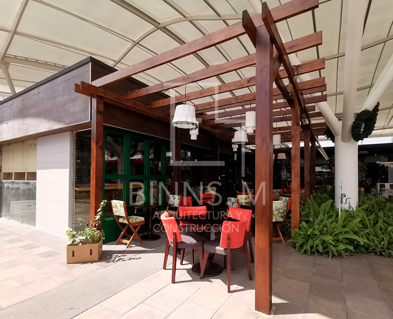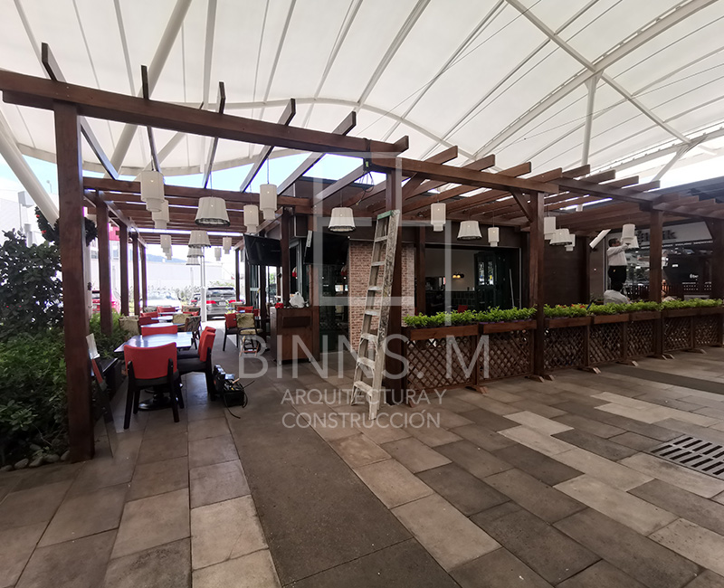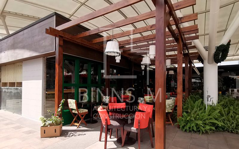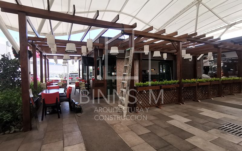 Diseño de restaurante Español de 140m2 compuesto por área de cocina, bar, salón y terraza.
